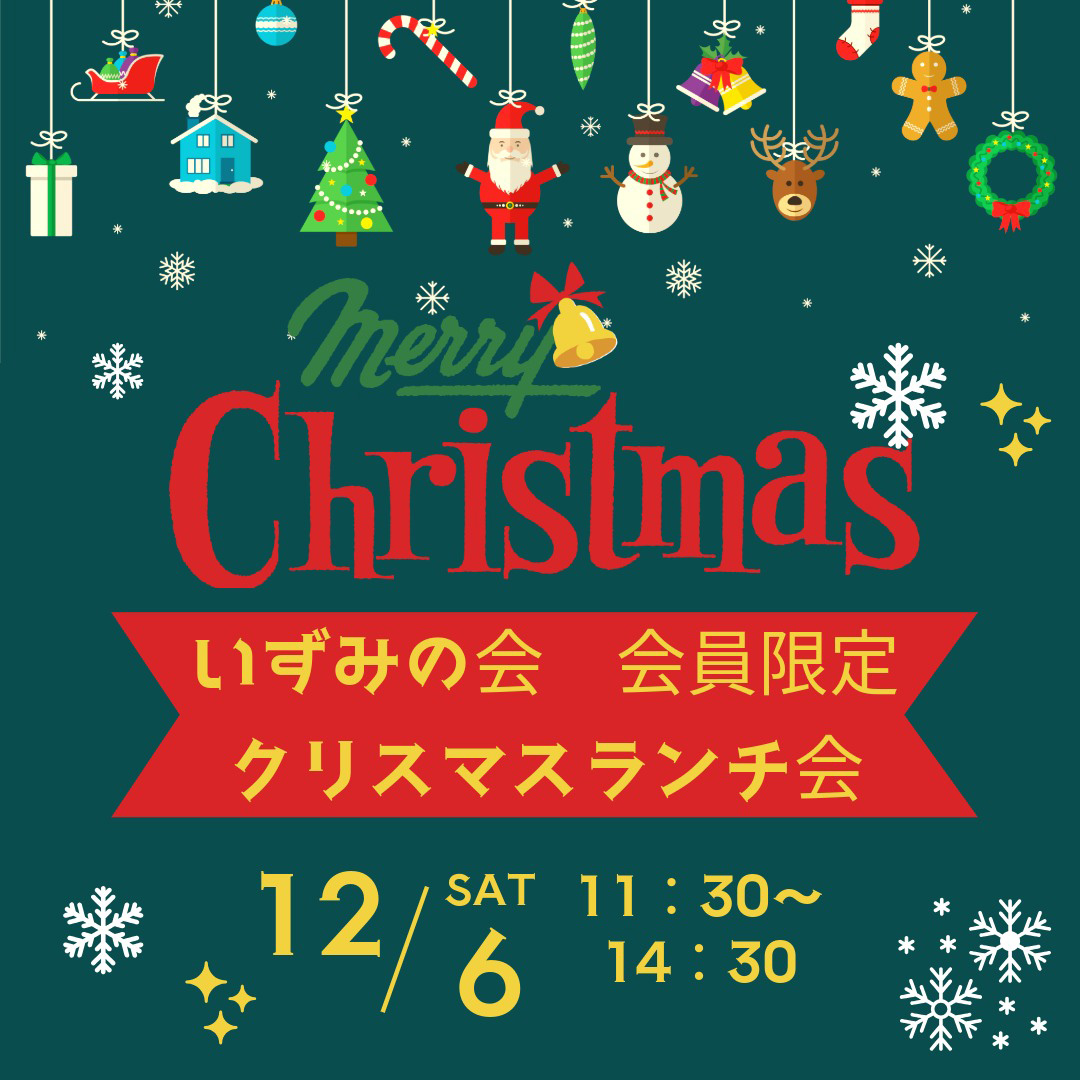 ポイント | いずみの会会員限定の楽しいクリスマスイベント!体に美味しいランチを食べながら、ビンゴゲームやパフォーマンス披露など、お楽しみ企画がいっぱいです。 |